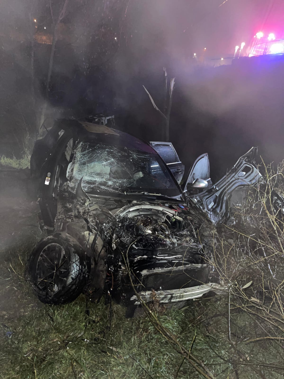 Când salvatorii au ajuns, mașina era distrusă, iar un tânăr de 23 de ani se afla încarcerat pe scaunul din dreapta, semiconștient. În afara autoturismului, șoferul de 29 de ani zăcea rănit și în stare confuză.