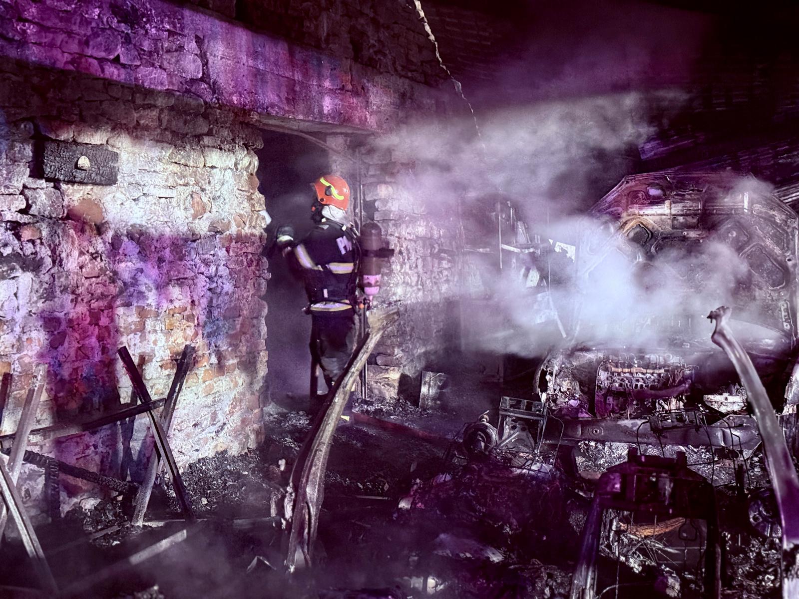 Pagubele sunt uriașe: bucătăria de vară a ars complet, două autoturisme au fost distruse, alături de un compresor, numeroase unelte de construcții și tinichigerie auto, dar și o cantitate însemnată de materiale din lemn și plastic aparținând primăriei.
