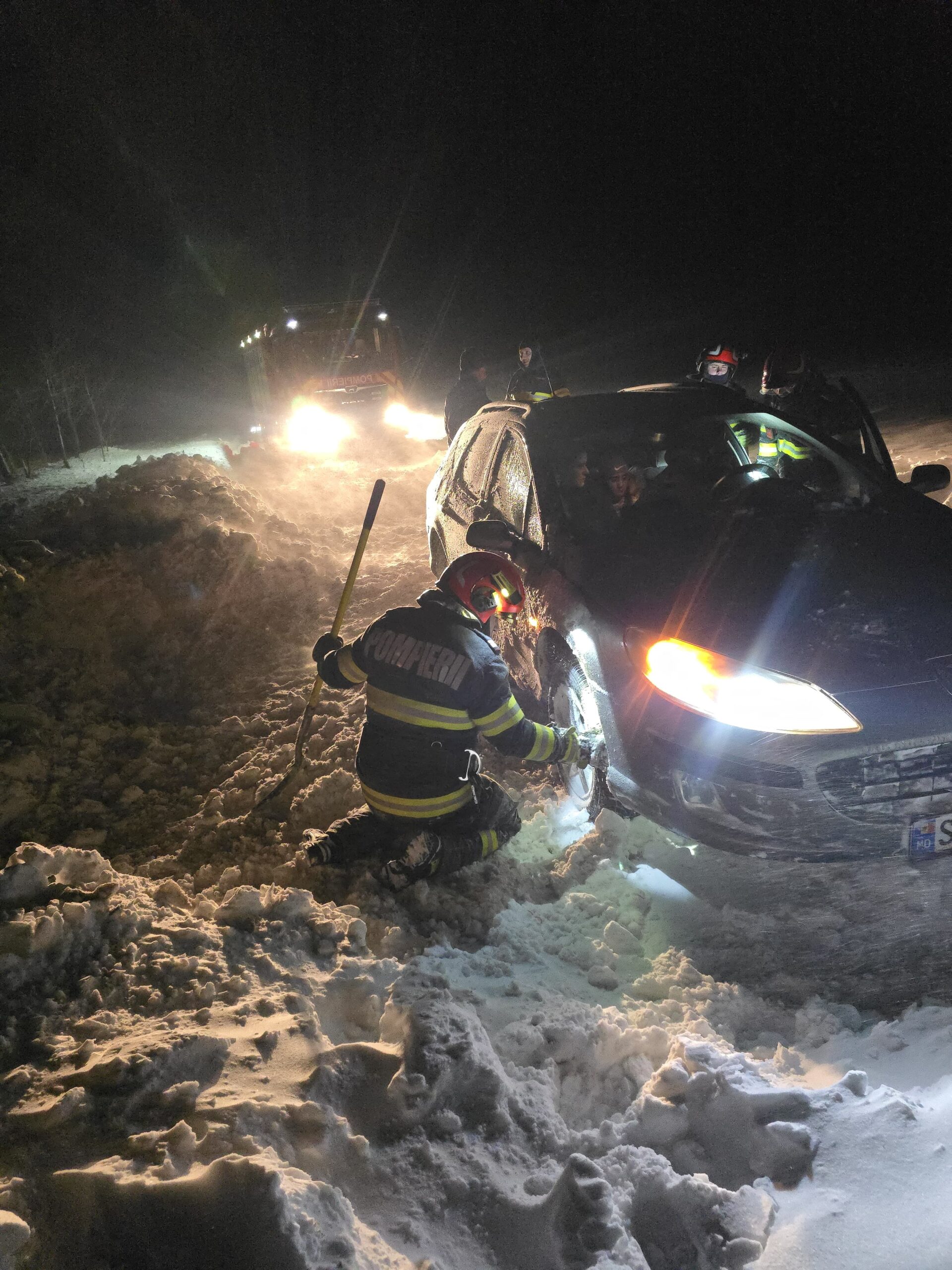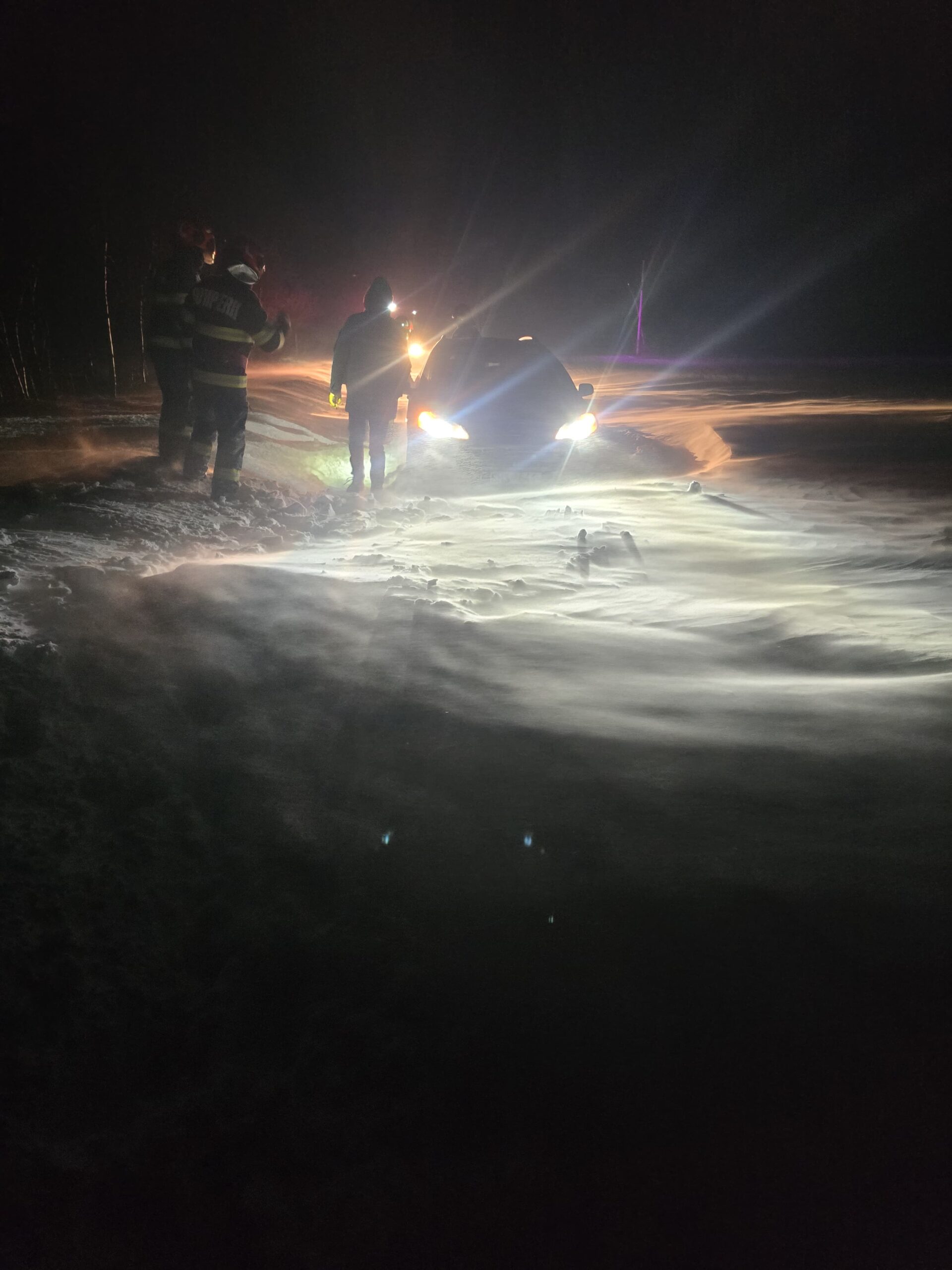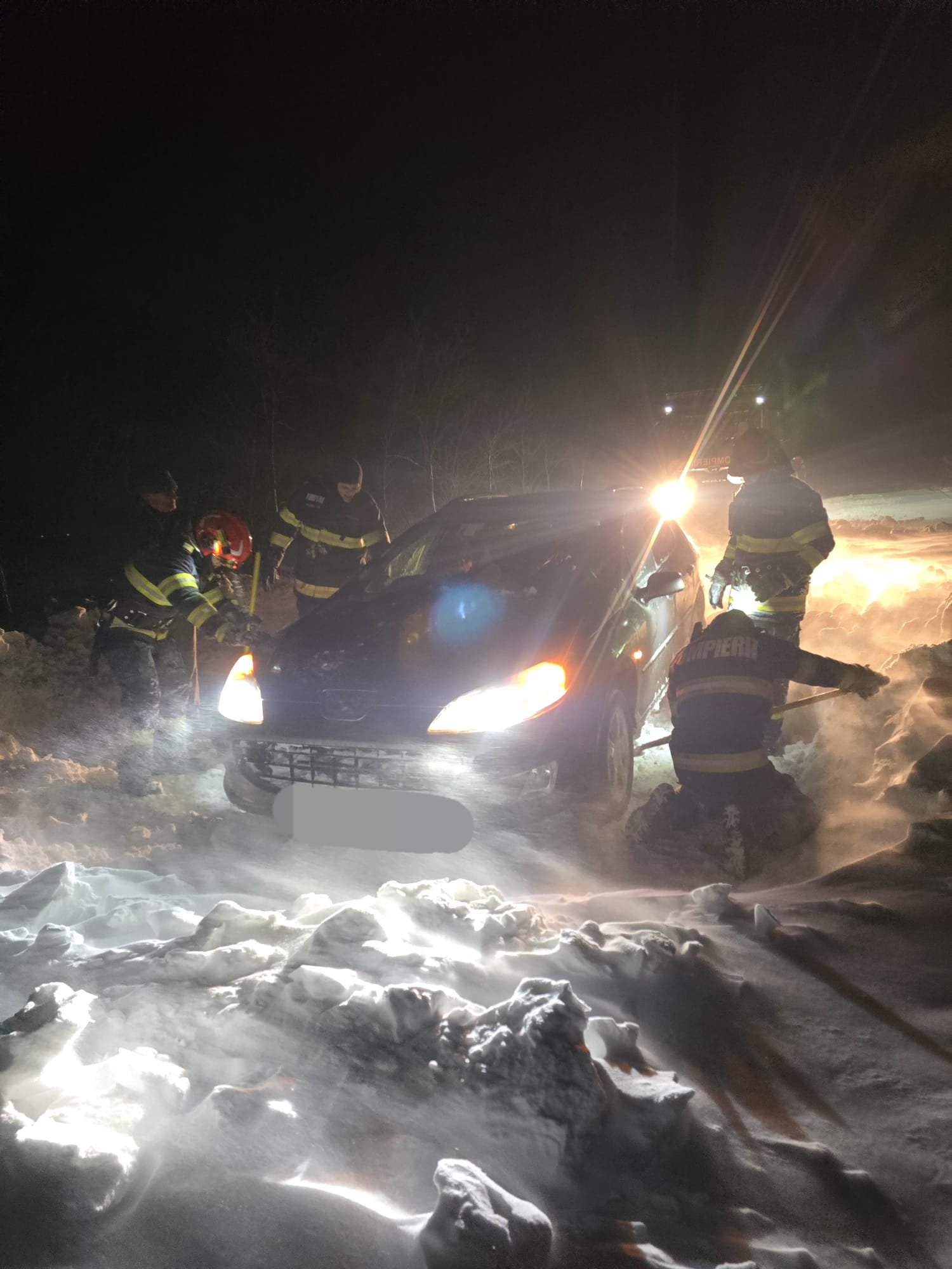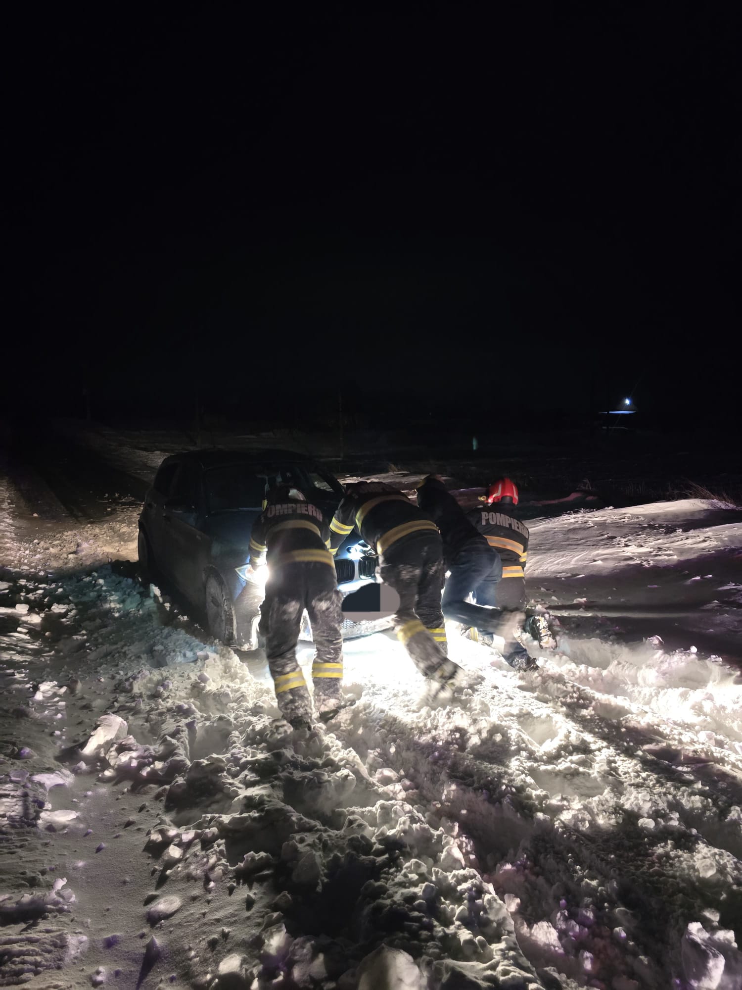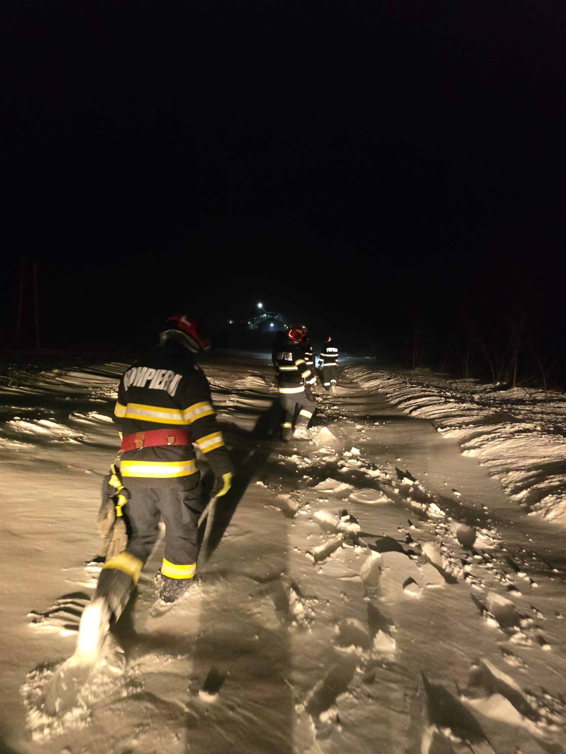 Cea mai tensionată intervenție a avut loc între Ștefănești și Ripiceni, unde un autoturism a rămas blocat pe un drum de exploatație. În mașină se aflau o femeie însărcinată și un bărbat, salvați de pompieri cu ajutorul unei autospeciale șenilate și transportați în siguranță la drumul național.