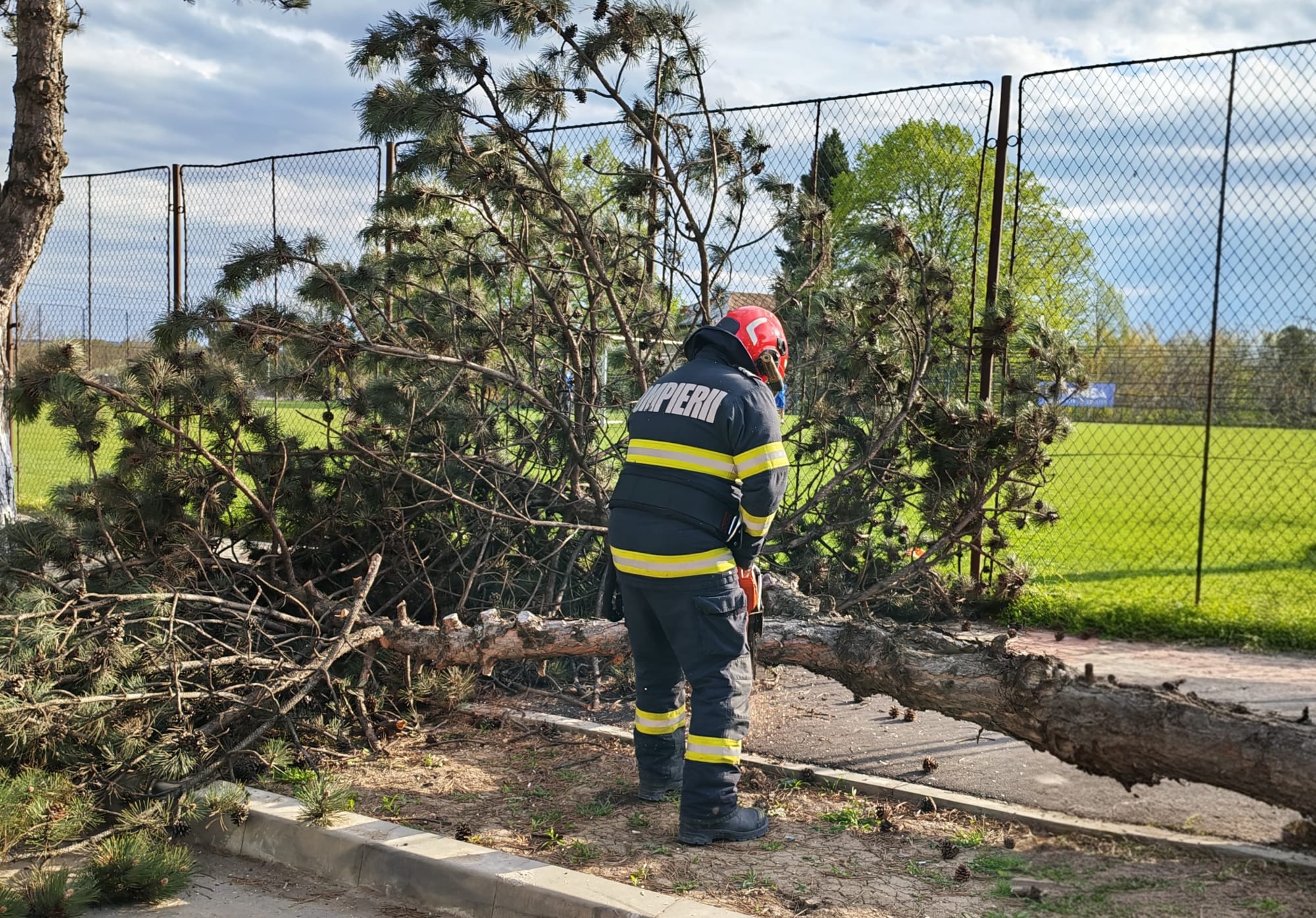 Una dintre cele mai tensionate intervenții a avut loc pe strada Pacea din municipiul Botoșani. Acolo, un copac masiv, slăbit de vântul puternic, amenința să se prăbușească peste trecători și mașinile parcate în apropiere. Salvatorii de la Detașamentul Botoșani au intervenit prompt, folosind o autospecială dotată cu echipamente specifice. Arborele a fost tăiat și îndepărtat bucată cu bucată, într-o operațiune desfășurată cu precizie, fără a bloca circulația în zonă.